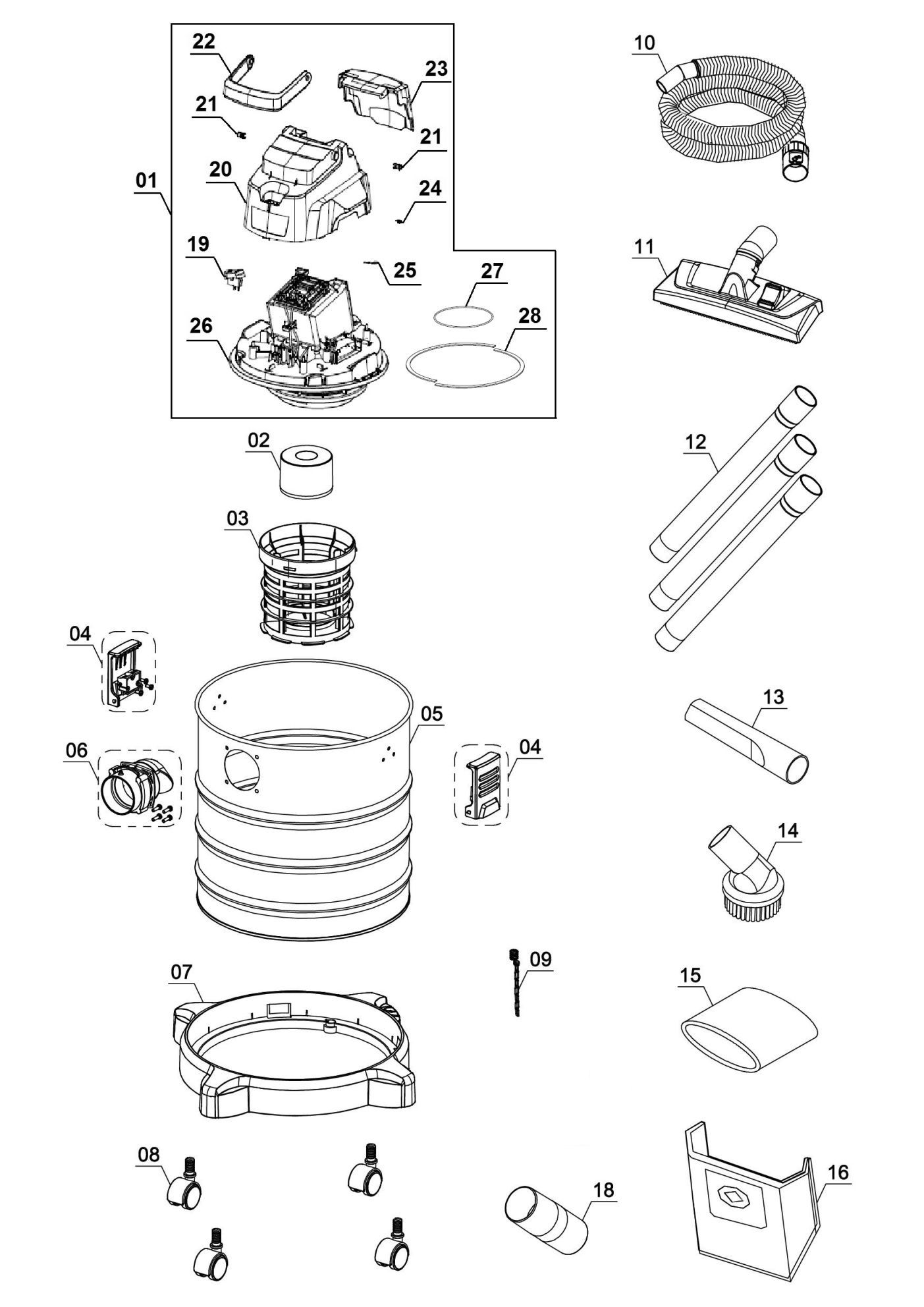 The Einhell 5.3 Gallon (20L) cordless wet/dry vacuum 2347137 is a high-performance member of the Power X-Change series, the flexible and interchangeable system series from Einhell. A wet/dry vacuum is an indispensable helper for thorough, in-depth and intensive cleaning jobs. Textiles such as car seats and covers, sofas or couches get cleaned deep down in the fibers with a wet/dry vacuum, not just on the surface. For carpets or fixed textiles too, as well as tiles or all types of glazed tiles with open pores, surface cleaning alone is often not enough. The wet/dry vacuum provides thorough cleaning and is an ideal addition to standard household cleaning appliances when it comes to stubborn and ingrained dirt. For patios and balconies, the wet/dry vacuum restores the radiance to surfaces that are not sensitive to water, floors and wall panels, as well as joints and balcony struts. All system rechargeable batteries from the Power X-Change series can be combined with all PXC devices. The rust-proof stainless steel tank has a capacity of 5.3 Gallons (20L) and the suction hose with a diameter of 1-3/8"" (36 mm) maintains high air and dirt flow. The blow connection is for blow-cleaning hard-to-reach areas such as corners, tricky angles or underneath the stairs. Four robust castors ensure good mobility and flexibility. For neat storage of accessories there is a practical accessories holder. The product is supplied complete with a 4.9 ft. (1.50 m) plastic suction hose and three-piece extension tube, a big combination nozzle, crevice and upholstery nozzles, as well as a foam filter, pleated filter and a paper dust bag. Battery and charger sold separately.